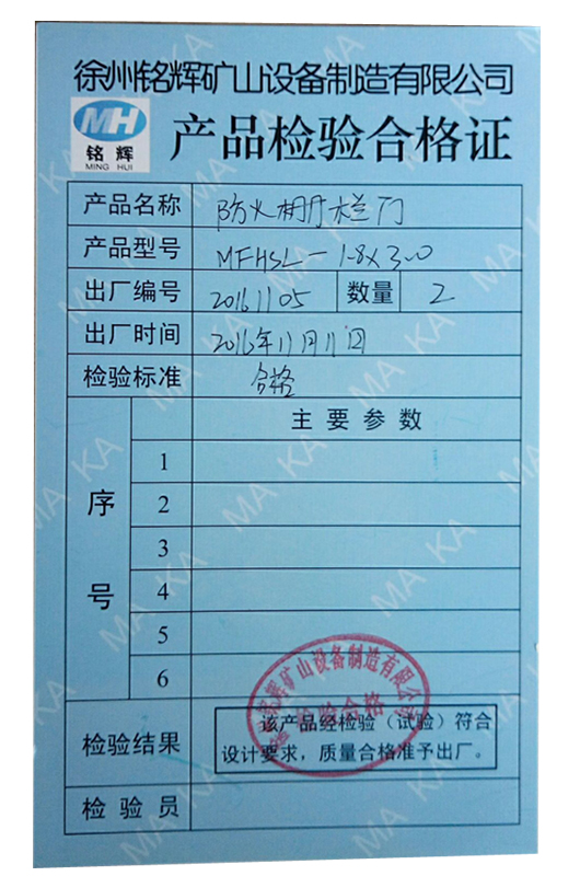 本防火及柵欄兩用門(mén)為煤炭工業(yè)部武漢煤礦設(shè)計(jì)研究院設(shè)計(jì),產(chǎn)品質(zhì)量標(biāo)準(zhǔn)和檢測(cè)標(biāo)準(zhǔn)嚴(yán)格執(zhí)行Q/WMS-3011-2005《防火及柵欄兩用門(mén)》。